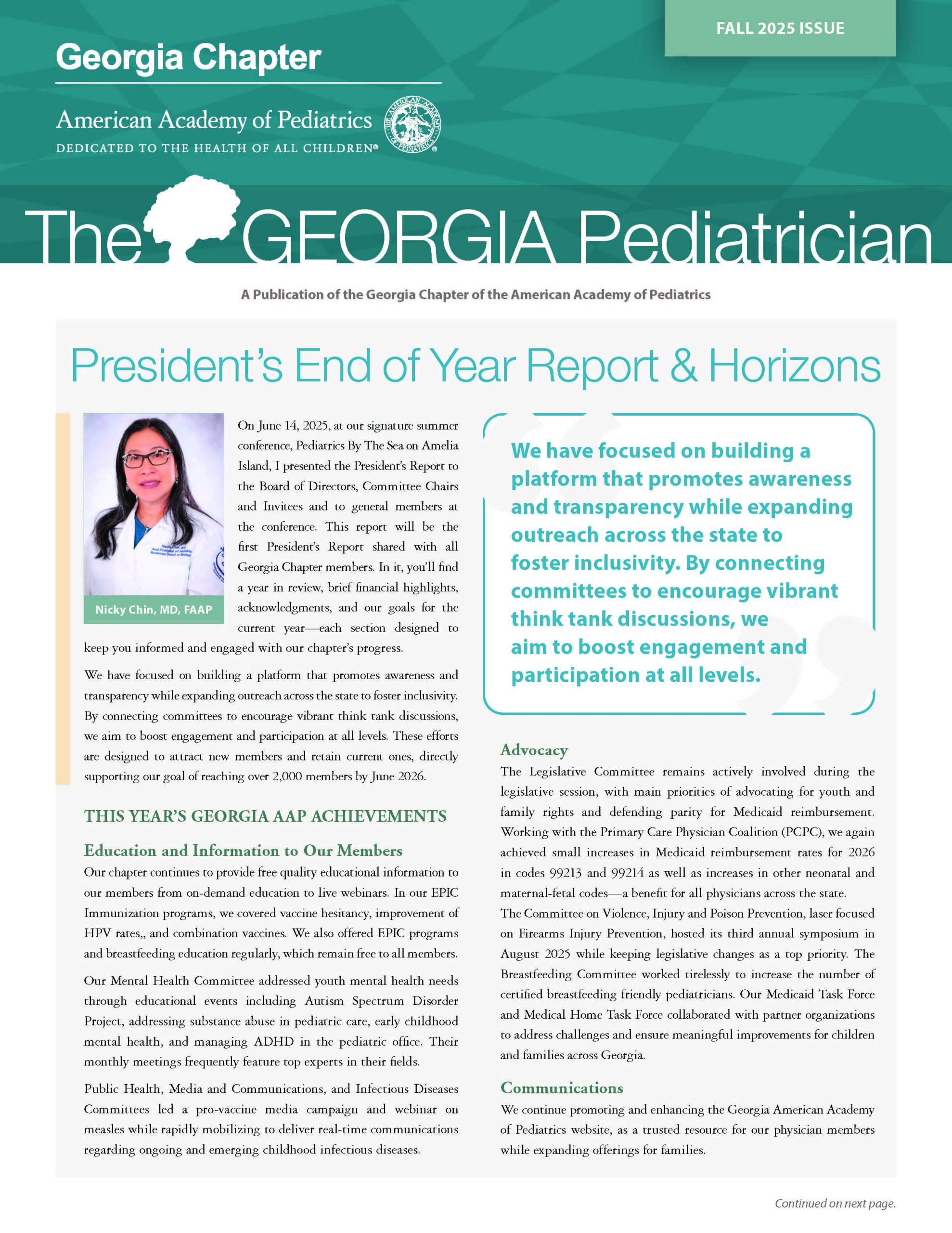 Want to know the latest news about the GA chapter? What about the latest headlines and stories in the field of pediatrics? Keep up-to-date with The Georgia Pediatricians publications.